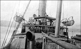 Heartened by messages of goodwill from King George V and Rudyard Kipling, the Division's 500 men boarded SS 'Umona' on Wednesday, 1st December, 1915. In peacetime, the liner had accommodation for only 75 crew and 58 passengers, so an uncomfortable voyage was assured even if the weather was kind.